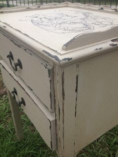 Σκουπίζετε καλά με ένα πανί να φύγει σκόνη ή οτιδήποτε άλλο από την ξύλινη επιφάνεια. Στη συνέχεια με ένα πινέλο περνάτε στα σημεία που θέλετε να φαίνεται φθαρμένο, βαζελίνη. Τη γνωστή βαζελίνη που σχεδόν όλοι έχουμε στα ντουλάπια μας. Περνάτε το χρώμα σας και μετά απλά με ένα πανί σκουπίζετε.